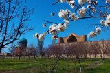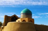 The mausoleum of Rabia Sultan Begim is a monument of medieval architecture (XV century), a place of pilgrimage in the city of Turkestan, a sacred place. The front part of the 5-room mausoleum is made in the form of a high arch with a pointed end. The central part of the mausoleum is covered with a dome mounted on a high cylindrical drum.
