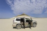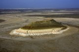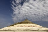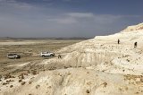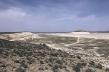 The Ustyurt Plateau is a vast desert or steppe-like plateau in Central Asia. It belongs to the Turan lowland and lies between the Caspian depression and the Western Aral Sea on the territory of Uzbekistan, Turkmenistan and Kazakhstan. The plateau has an area of about 180,000 km², the highest height is 370 m. The Mangyshlak Peninsula, which extends far into the Caspian Sea to the west, is usually classified as the Ustyurt Plateau. On the northern outskirts, the plateau reaches a height of 556 meters in the Mangystau mountains. There is very little water on the plateau.
