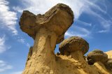Обнажения конкреций тянуться с двух сторон от гор на десятки километров, придавая неповторимость здешнему ландшафту. Зоркому глазу могут попасться окаменевшие остатки былой океанической жизни – ядра двустворчатых моллюсков, улиток и аммонитов, крупные и мелкие устрицы.
