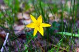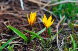 The bulb of Tulipa Dasystemon is small, no more than 1.5 cm in diameter, covered with brown papery scales. Inside, the bulb is bare or slightly pubescent at the top with a few pressed hairs. The stem is short, reaching 15–20 cm in height, with two spaced linear leaves that are longer than the flower. The flower is bright yellow, up to 3 cm in height, with pointed perianth lobes. The outer lobes are greenish-purple on the outside, which creates a beautiful contrast. The stamen filaments are hairy, cylindrical, yellow, like the anthers. The ovary has a long style, and the fruit is an oblong capsule up to 2.5 cm long and up to 1 cm wide. One capsule can contain up to 159 normally developed seeds. Reproduction occurs both by seeds and vegetatively. Tulipa pilosaten blooms from early May to late July, and bears fruit in June-August. It grows in steppe and meadow areas of slopes, as well as in forest glades from the middle to alpine belt. Its main habitats are the Zailiysky Alatau, the Ketmen and Terskey Alatau ridges, and partly the Kyrgyz ridge (Almaty and Zhambyl regions). Although some literary sources mention that this species is found throughout the Tien Shan, it has not been found in the Kazakh part of the Western Tien Shan.