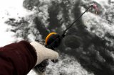 We need to find on the lake our special place where we will start fishing. The search for a place for fishing is determined by the depth of the bottom and the course of the water. On the found place we will drill a hole in the ice for fishing, used fishing tackle according to desire.