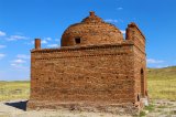Tagymbay's mausoleum is a modern building, it was built in 1877, which is quite a late period for this region and the architecture of this region. The height of the building is 6 meters, width 4 meters, length 5 meters. The entrance to the building is not large, the height of the entrance is 1 meter, you can go inside and read a prayer. The architecture of the Ulytau region is very impressive, quite a large number of mausoleums were built here, they date from different periods, there are modern mausoleums and there are very ancient ones, many of which have now been restored. All mausoleums are reached by country roads, not paved.
