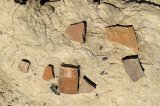 С севера и северо-запада к крепости Баланды-1 примыкает поселение Баланды 2, состояв¬шее из отдельных домов, которые сохранились в форме пологих бугров, усыпанных фрагментами керамики и обломками кварцита. Между до¬мами видны следы оград и арыки, бравшие начало от неболь¬шого канала, огибавшего поселение с северной и северо-западной стороны. Канал прослежен нами на протяжении 2,5 километров. Его ширина не превы¬шает 10 метров. Среди подъемного материала с поселения, кроме фрагмен¬тов керамики, встречаются бронзо¬вые наконечники стрел IV - II в.в. до н. э., разнообразные кварцитовые изделия, украшения - подвески, бусы из сердолика и стекла. Раскопки, проведенные на Баланды 2 в 1960 году, показали, что мавзолей был основательно разграблен еще в древности. Однако полученный материал не оставляет сомнения в том, что по крайней мере в части помещений, расположенных по кольцу, находились погребения. Из находок, сделанных при раскопках Баланды 2, отметим ру¬коятку из резной кости, по технике обработки очень близкую к костя¬ным поделкам с городища Баланды 1, обрывки кожаного изделия, украшенного золотом, железный нож и фрагменты тонких хлопчато-бумажных тканей простого плетения. Ткани окрашены в красный и желтый цвета и расписаны черными, синими и темно-красными по¬лосами. Анализ конструкций Баланды 2, в особенности его купола, при¬водит к интересным результатам. Мы знаем, что ложный купол давно существовал на Востоке и в Средиземноморье.