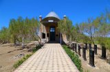 The mausoleum of Kilauyz Ata is surrounded by a brick fence, large saxaul trees grow inside the courtyard, very beautiful and unusual. There is always a caretaker in the mausoleum, as well as here you will meet frequent pilgrims who travel to the holy places of Kazakhstan. The mausoleum building is built of modern materials, yellow brick, the roof of the mausoleum is crowned with an iron dome, decorative towers are located at the corners of the building, the mausoleum building is made in the form of a small mosque.