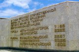 - a wall of heroes and sorrow. The Wall of Heroes is lined with red granite slabs with the names of fallen fellow countrymen - Heroes of the Soviet Union - cast in bronze. The compositional center is a stele facing the sky, covered with titanium plates.