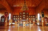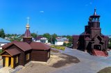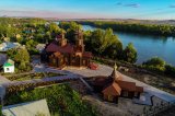 The Pokrovsky Cathedral in Ust-Kamenogorsk was built in honor of the Intercession of the Most Holy Theotokos, consecrated on November 2, 2010. It is a wooden structure with one bell tower and one golden dome. The building is very beautiful, there are not many such wooden churches left, the interior is also very impressive and looks impeccable. The temple is located on the riverbank in a very picturesque place.