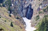 The Black Waterfall is a natural landmark located at an altitude of 2715 meters above sea level in the Trans-Ili Alatau Mountains. The waterfall is very popular among fans of outdoor activities and hiking in the mountains, since waterfalls in the Almaty mountains are very rare. The waterfall belongs to the gorge of the Small Almaty River and is formed by a small stream that has no name.