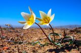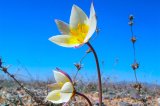 盐沼郁金香 (Tulipa Salsola) 是一种罕见而令人惊叹的植物, 在哈萨克斯坦和中亚最干燥的地区找到了家园。 它薄而结实的花瓣能抵御狂风和烈日, 展现出令人难以置信的韧性。 这朵花就像一望无际的大草原之间的火光, 与严酷的风景形成了鲜明的对比。 该物种在20世纪初被发现, 由于其不寻常的生态适应和美丽, 从此成为研究和钦佩的对象。 它的名字 (Salsola) 与一个可以在盐渍土壤上生长的植物属有关, 这强调了它在这种条件下生存的独特能力。 郁金香花是它的主要装饰, 花瓣是明亮的白色, 从远处可以看到花朵的黄色中央部分, 这样的郁金香可以复盖地球的相当大的区域, 从照片中可以看到。 郁金香在中亚的盐碱地和盐沼中被发现, 包括哈萨克斯坦。 它喜欢开放的阳光充足的地区, 排水良好, 经常生长在岩石土壤上。