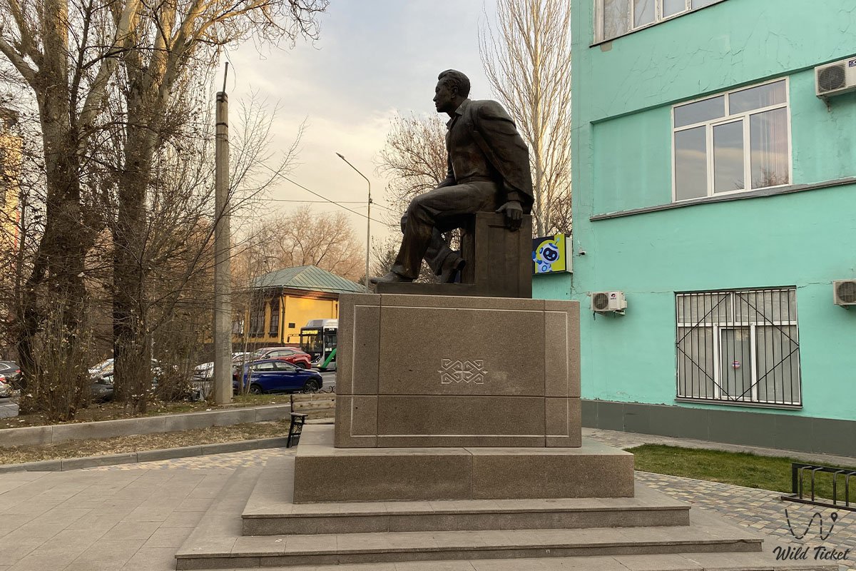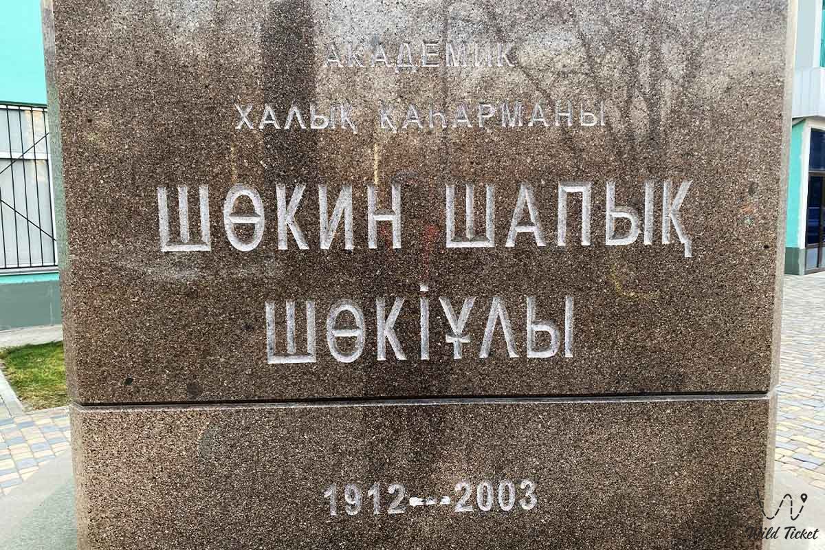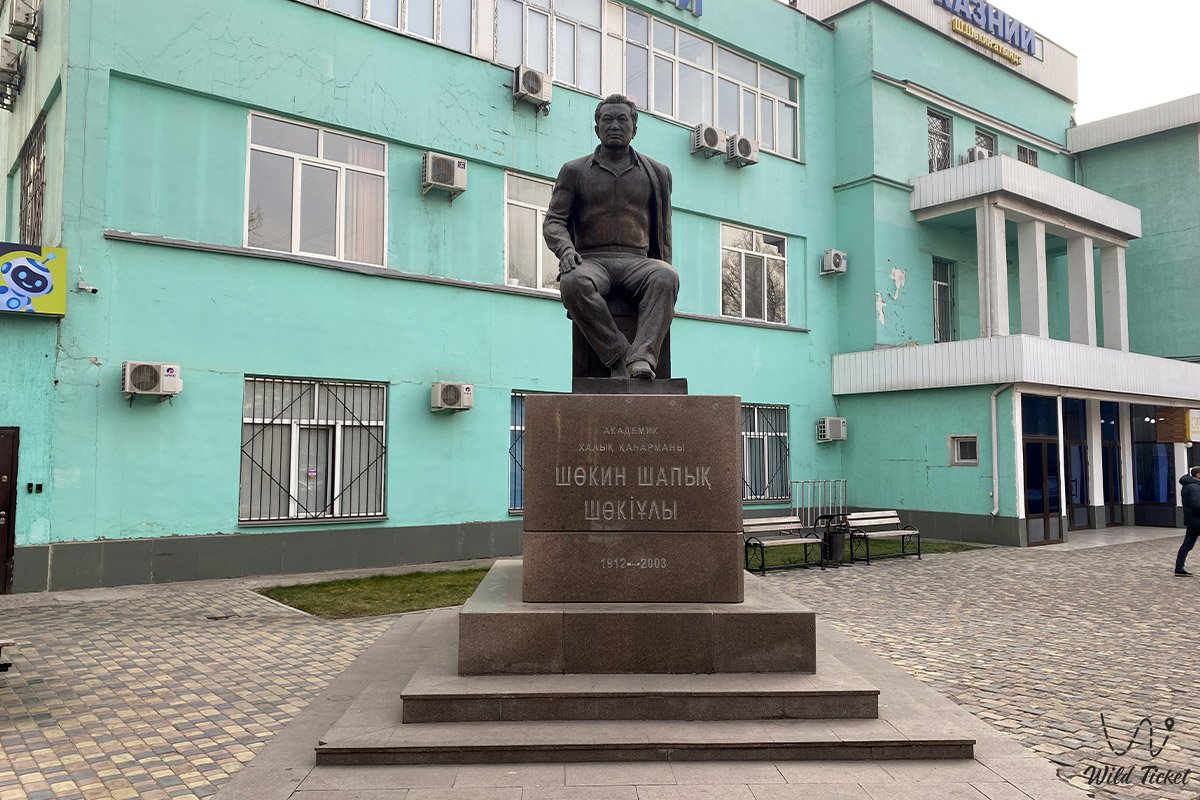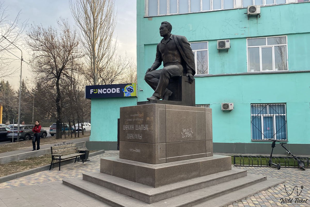 The monument to Shafik Chokin is located at Dzhambula Street, corner of Baitursynov Street, 50 meters from the Akhmet Baitursynov Museum and 150 meters from the city center named after A. Baitursynov, Almaly district, Almaty, Republic of Kazakhstan.