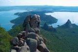 The Kokshetau upland (The Burabay Mount) is a magical place of Borovoye, a place of power, a panoramic point from which a beautiful panorama of the Burabay National Park and the lakes located here opens. The place is also known as Mount Kokshetau or the Kokchetav Upland, it is part of the Kazakh Small Hills and is located at an altitude of 947 meters above sea level. The slopes of the mountain are covered with a beautiful pine forest, and there is a simple hiking route through the entire forest that allows you to reach the hill. As described above, from a panoramic point on the mountain you will see Lake Big Chebachye, Lake Small Chebachye, Lake Borovoe (Auliekol), and in the distance you will see Lake Shchuchye. This place is very popular, in the village of Borovoe you can find a guide who will guide you to the place and show you all the sights along the way. You can also stay in a hotel or guest house in the village for a rest. Parts of the hill are also natural attractions such as the rock island of Zhumbaktas and Mount Okzhetpes.