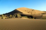 这是一个非凡的自然现象 - 一个大约150米高, 近3公里长的沙丘。 它由非常细和干燥的沙子组成, 当摩擦时, 它开始发出低沉的嗡嗡声, 就像器官或飞机的遥远嗡嗡声。 游客喜欢爬到沙丘的顶部, 用自己的耳朵听到这种歌声。 当地人认为, 沙漠精神唱歌, 保护古老的土地。