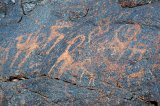 Bayan-Zhurek Mountain Valley, Bayan-Zhurek petroglyphs, Eshkiolmes petroglyphs are real open–air museums. Ancient artists left more than 10,000 petroglyphs on their rocks: mountain goats, horsemen with bows, and whole scenes from the life of nomads from different eras – from the Bronze Age to the time of the Turkic khaganates.