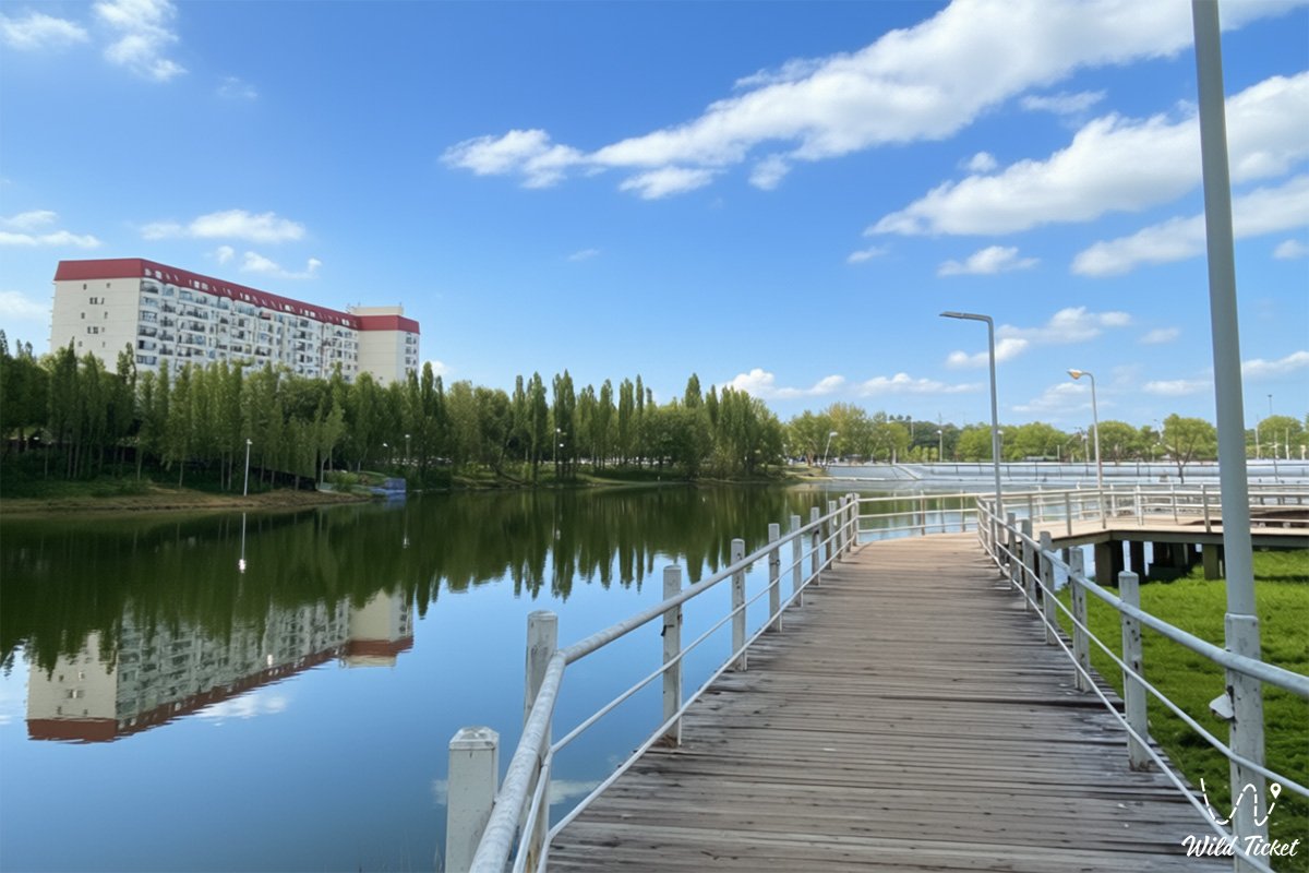 A pedestrian pier with a length of about 1,200 meters has become a special pride of the park. It runs along the lake and connects different parts of the neighborhoods, offering beautiful views of the water and urban landscapes. Walking along the bridge, you can feed the ducks that live here in large numbers. In spring and summer, the park is especially pleasing with dense greenery, and in autumn it turns into golden and crimson tones.