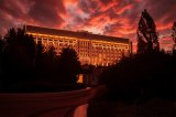From the south side there is a beautiful view of the mountains of the Trans-Ili Alatau, creating the feeling that the building itself stands on the border between human power and the force of nature.