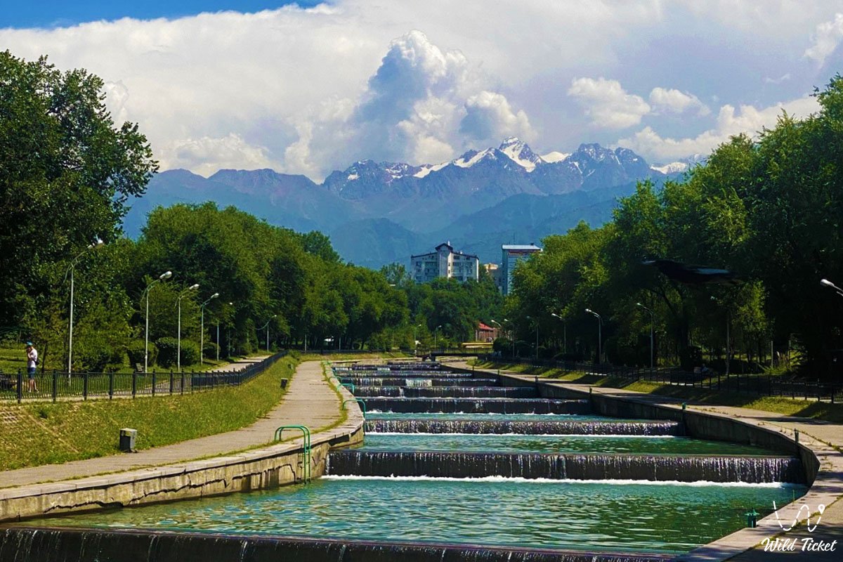 Today, Dostyk Park has become a place where residents and visitors of the city can stroll along the shady alleys, relax on benches or sit on the grass under one of the many trees. It is convenient to spend time with children, take a walk or just enjoy the view of the mountains of the Trans-Ili Alatau, which offers a beautiful panorama from the park. The Yessentai River flows next to the park, along which a pedestrian zone is landscaped, so the place is very popular, here you can walk in the park and then walk along the river listening to the sound of water.