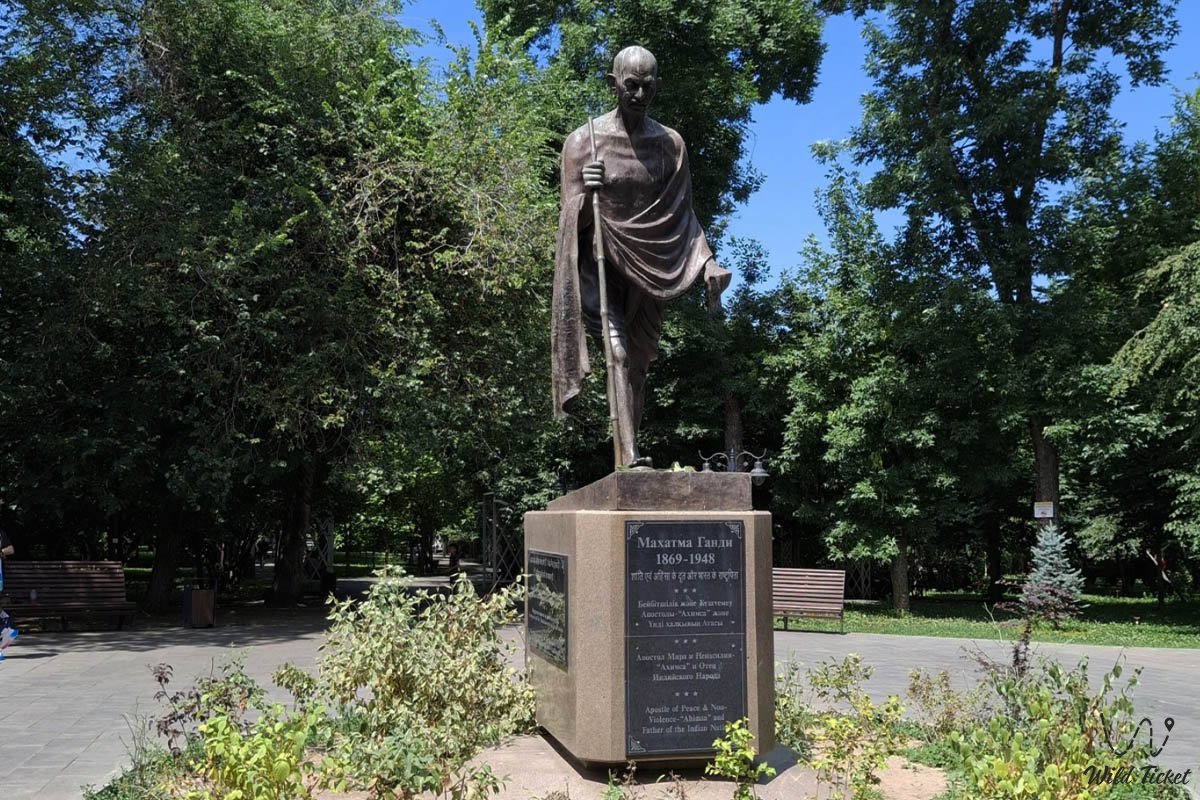 Mahatma Gandhi Park is one of the brightest and most harmonious places in Almaty, filled with the philosophy of peace, kindness and inner balance. It is dedicated to the great Indian thinker, freedom fighter and national leader of India, Mahatma Gandhi, who became a symbol of nonviolence, peace and humanity throughout the world. There is a monument to Mahatma Gandhi in the park.