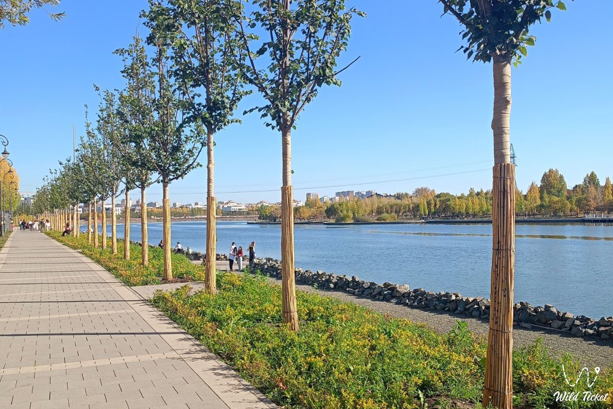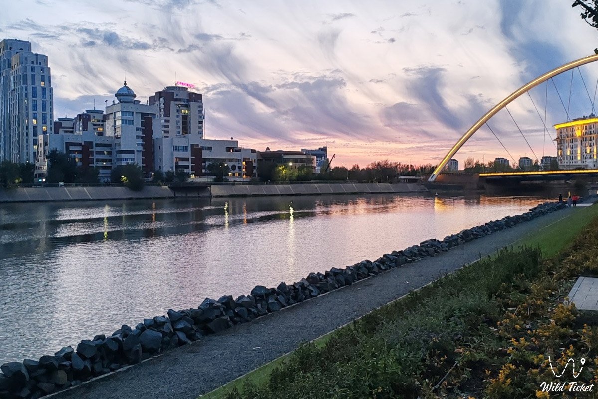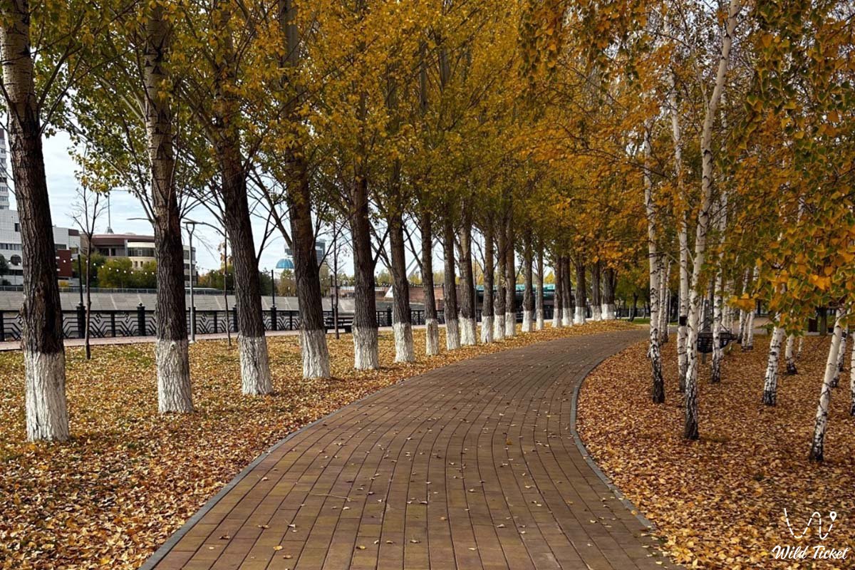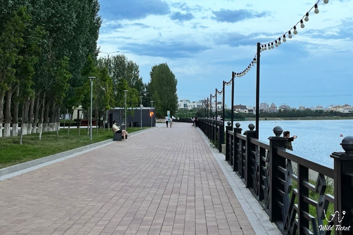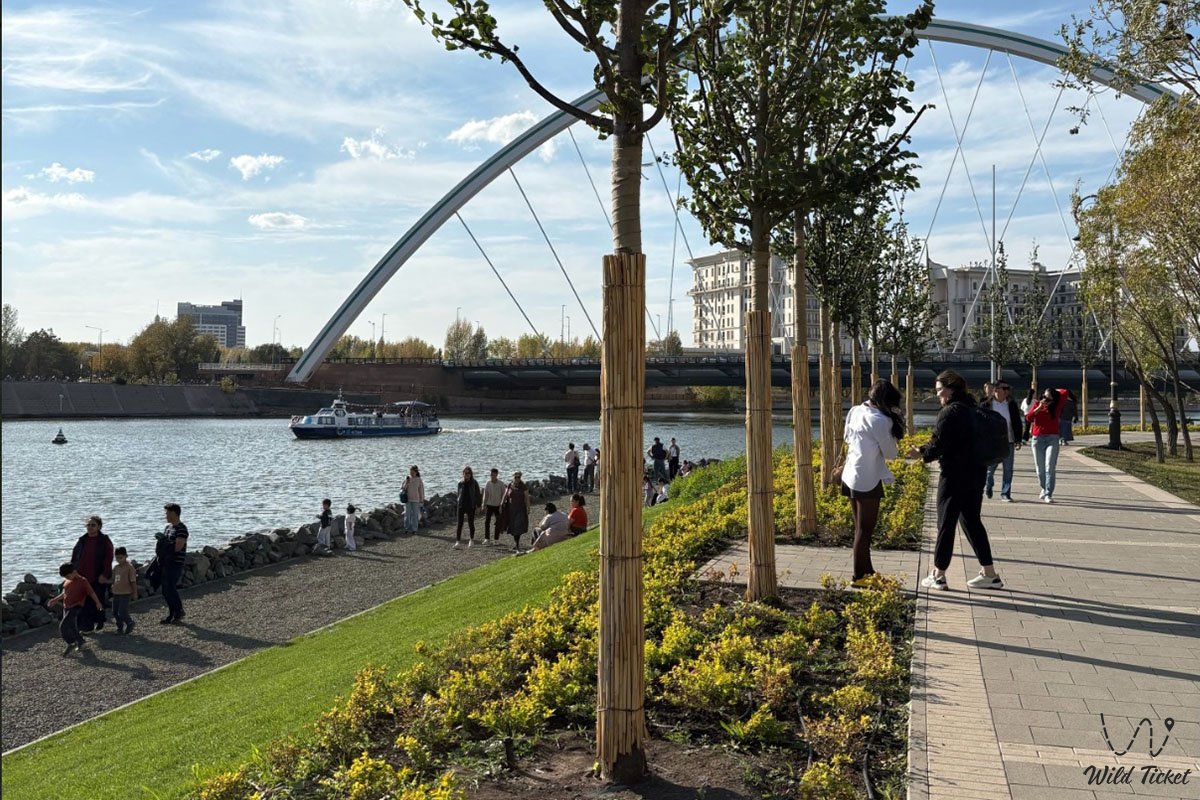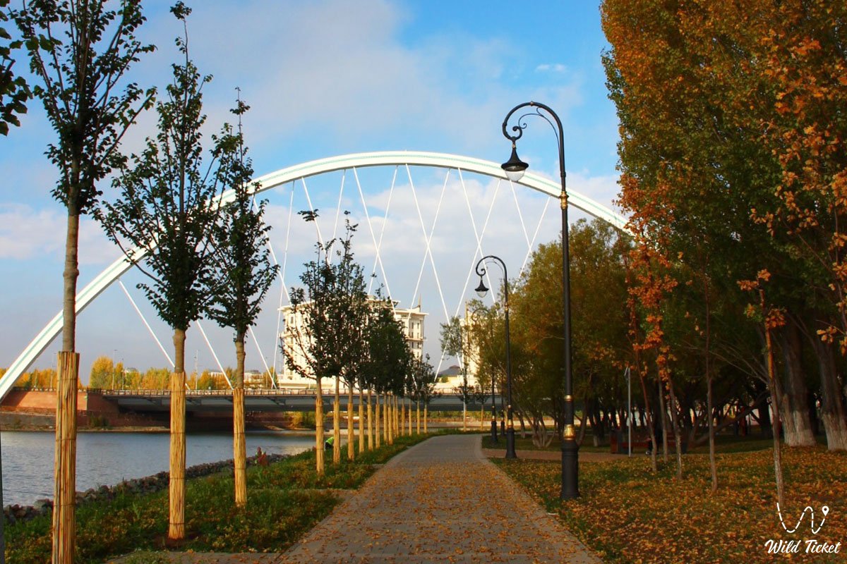 The park became a standard of urban comfort after renovation: "smart" play areas under canopies and endless rows of hammocks appeared here. It is an ideal spot for those looking for aesthetics in details – from the mysterious Mobius strip to the monument to the poet Yunus Emre. If you walk along the embankment from the park, you will reach the Atyrau Pedestrian Bridge, which you can use to cross to the left bank of the Ishim River to the Astana Central Park.