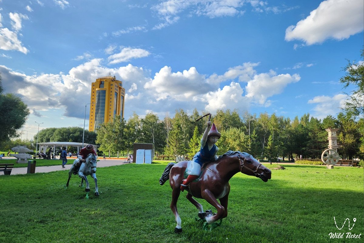 The style of the park can be called "natural minimalism." Wood and natural stone dominate the finish of the new zones, emphasizing the status of the greenest corner of the capital. The architectural dominant is the 10-meter "Zher-Ana" (Mother Earth) monument in the form of a giant bull with Queen Tomyris. This powerful combination of Turkic history and modern landscape design makes the park's architecture unique for Astana.