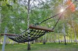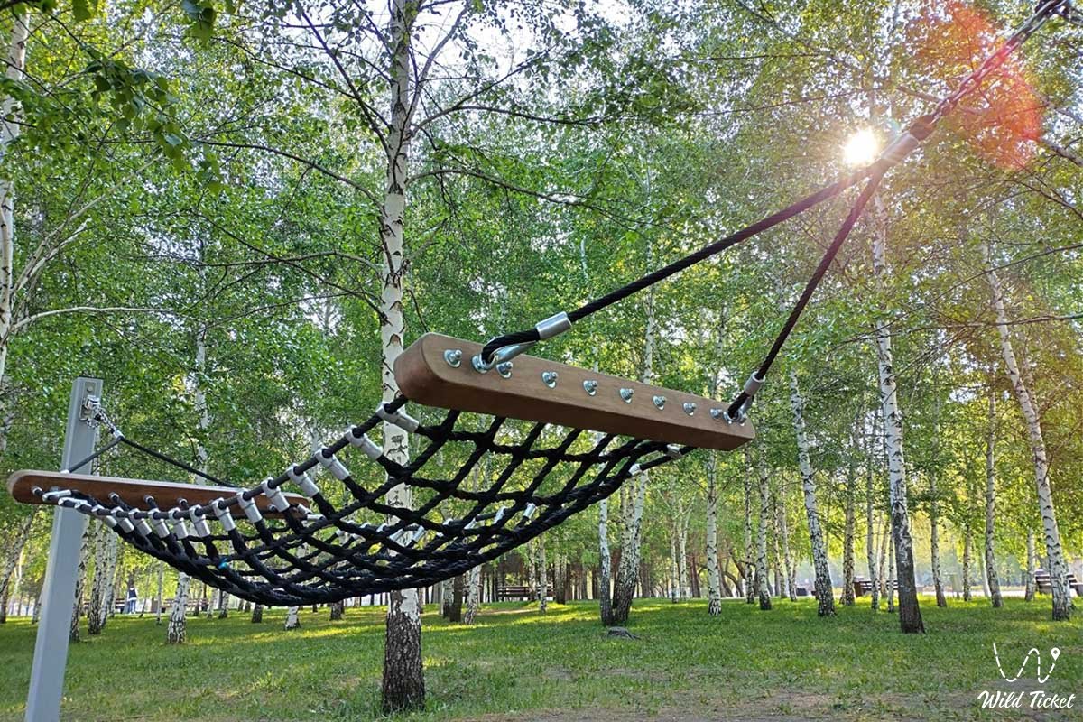 The main feature of the park is its unusual decor. Here you can stumble upon mystical sculptures in a pagan style and a futuristic Mobius strip. The central point of attraction is the area around the main Christmas tree, where circular bench-swings are installed. It is an ideal place to get lost in thought while watching the flow of the Ishim.
