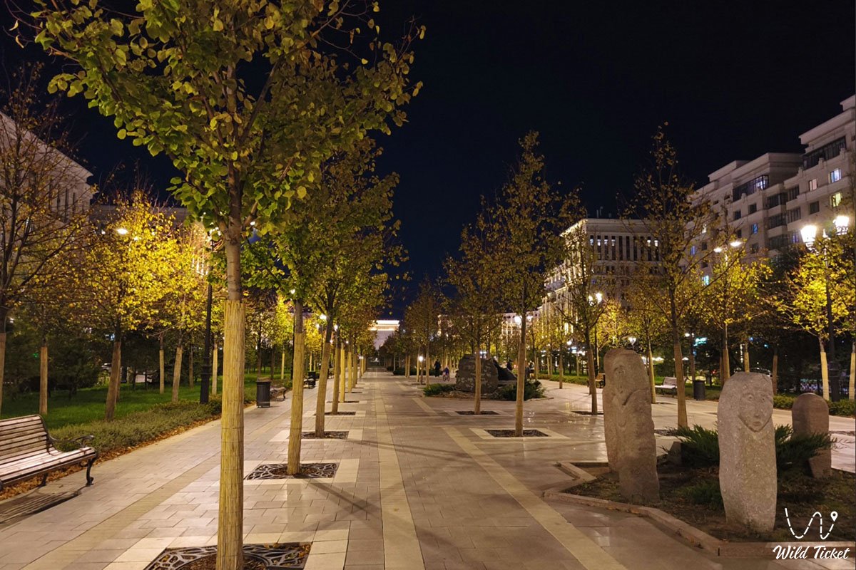 A walk along the alley allows you to see sculptures of saigas and a copy of Tamerlane's stone from Altynshoky peak which emphasizes Astana's status as a city that deeply respects the cultural heritage and historical memory of ancestors.