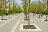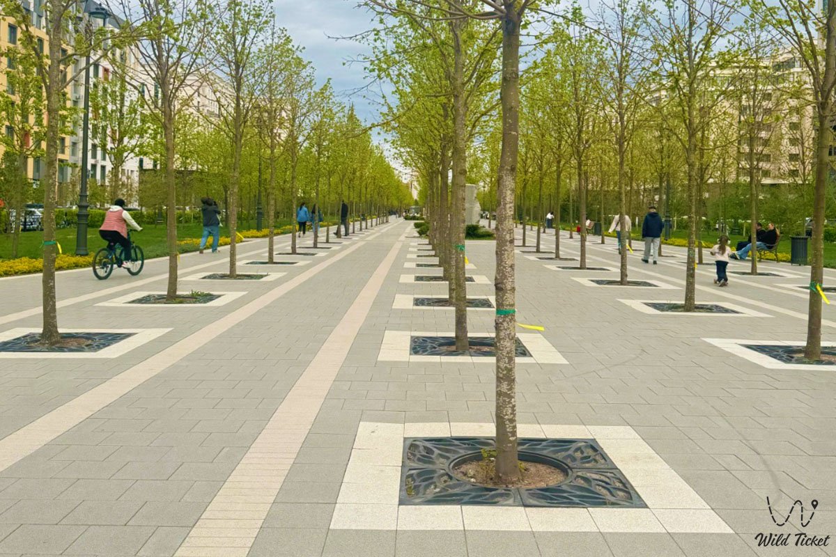 In the evening the alley is illuminated emphasizing the texture of the stone and bronze figures. The presence of children's and sports grounds in Linear Park which actually continues with this alley makes the zone comfortable for family leisure. The proximity to the Triumphal Arch allows tourists to combine a historical excursion with a tour of the main architectural landmarks of the left bank.