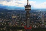 The main function of the Koktobe TV Tower is to provide radio broadcasting and television for Almaty and the surrounding areas. The height of the tower is 372 m, it has two high-speed elevators and a special lifting mechanism. The metal part of the mast is lined with 18.5 m profiled aluminum panels, some sides are separated by a stained-glass window. The city's sightseeing area is located at an altitude of 146 m. This site is currently closed to the public. The department of Technical Supervision of antenna-feeder systems is located at an altitude of 252 m. The tower ends with a sectional metal antenna shelf 114 m high. Each section has antennas for television and radio broadcasting. It broadcasts via antennas within a radius of 80-190 km on 5 TV channels and 4 radio channels. On the ground floor of the house for maintenance there are broadcasting stations, offices equipped with communication devices and controls. The Koktobe TV tower is a strategic facility and is under guard, access to the territory of the TV tower and to the technical rooms of the TV tower is prohibited.