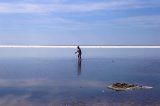 Inder or Inderbor salt lake, the most beautiful place in Kazakhstan, is a favorite place for tourists, the lake is also known for its healing qualities and mud baths. Salt water and therapeutic mud eliminate various kinds of diseases. The depth of the lake is very small, the maximum depth is 50 centimeters. The lake is very similar to the Solar de Uyuni salt flat in Bolivia. Here, just as in Bolivia, the water lies in the open steppe at a great distance, clouds and the sky are reflected in the water of Lake Inder.