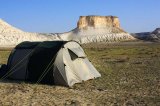 Around Shergaly there is a scattering of spherical boulders - nodules of various sizes. Many cracked by the wind. Other small nodules are broken. Inside is a trace of a shell or fish. Not far from Chergaly there is a green oasis: a spring and a small river Akmysh.