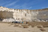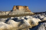 Northern Aktau (white cliffs 111 km of road to Kalamkas and Karazhanbas) can be defined as the "Chalk Mountains". The mountains are composed of limestones, marls and white clays.