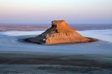 Shergala (Sherkala) is a lonely mountain of unusual shape, about 170 kilometers from the city of Aktau, near Shetpe. On the one hand, the mountain resembles a huge white yurt, on the other, it resembles a sleeping lion with its head resting on its paws. Shergala translated from Turkmen means “Lion Mountain” or “Lion Mountain”.