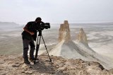 The Mangyshlak Peninsula is hundreds of kilometers of rocky Caspian coast, countless kilometers of desert, but other than that there are golden sandy beaches. One of them is Blue Bay.