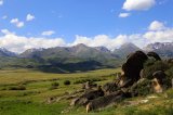 The Bayan-Zhurek Mountains are distinguished by their soft outlines and an amazing variety of landscapes. Here you can find: wide mountain valleys where clear streams and rivers flow, surrounded by green meadows. Here you will see rocky spurs and hills on which ancient petroglyphs have been preserved, which are called the Bayan-Zhurek petroglyphs and archaeological sites that represent ancient settlements and ancient human sites, for example, the Bayan-Zhurek Settlement of the Bronze Age. All these places are intertwined with picturesque steppe spaces, smoothly turning into picturesque foothill areas.