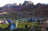 Trekking: On the way Kargalinskiy pass (H3730ft), go up to the pass and going down to the moraine lakes in Manjilki place, lunch on the way, continue trekking to the Osipnoy pass (H3710ft), from the pass going down to the valley, dinner and overnight at the tents.