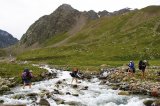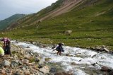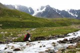 Trekking: today we will cross Middle Aksay river, going up to Aksay lakes (H3250ft) (10 km), lunch on the way, walking to Second Aksay lake (2 km), dinner and overnight at the first lake.