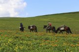 To travel around this territory, you need to issue passes, also here we use horses for movement, horses can transport both people and cargo. We recommend walking and using horses only for transporting cargo. Traveling around this territory does not cause any particular difficulty, smooth hills are not high mountains, ascents alternate with descents to beautiful valleys. The whole load is carried by 5 horses, we all go light with personal belongings and water. This trip is notable for its comfort and does not cause any difficulties on the way.
