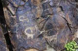 Tour petroglyphs of Tambaly in Anrakhay mountains, sun-headed deities, Almaty region.