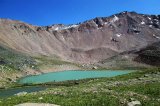 Lake Titov is located high in the mountains at an altitude of 3377 meters above sea level, surrounded by the mountain peaks of the Zailiysky Alatau. There are four lakes in total, let them lie through the Gorelnik gorge, which adjoins the Small Almaty gorge just above the Medeo tract, where the famous Medeo sports complex and the Medeo mudflow protection dam are located. At the entrance to the Gorelnik gorge, there is a hot thermal water source Gorelnik.