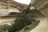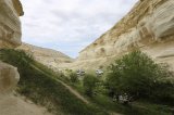 Kapamsay is the chalk canyon, a landmark of the Mangyshlak and Tyupkaragan peninsulas. The canyon is composed of Jurassic Cretaceous deposits. The color of the canyon is white, mixed with green vegetation, which gives the canyon extraordinary beauty and unusualness. Near the canyon there is a mountain Kapam height of 200 meters above sea level and in the south of the canyon there is an abandoned village "The Way of Communism".