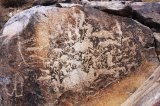 Количество наскальных изображений Шунак составляет примерно 200-300 изображений. Здесь вы увидите как одиночные изображения, так и групповые. Здесь изображены звездное небо, быки, лошади, сцены охоты. Изображения Звездного Неба говорят о сакральности объекта и о том что в древности наши предки поклонялись Солнцу, всего здесь изображено 5 сакральных сцен. Так же петроглифы Шунак изображают войну, здесь есть большое изображение воющей армии на большом камне.