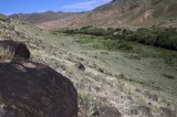 Asy高山高原的岩画位于海拔, 2500米的高度, 位于哈萨克斯坦共和国阿拉木图地区, Enbekshi-Kazakh区, Zhaman Uy山区, Asy山河左岸.