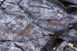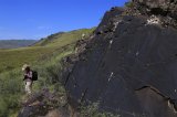 Eshkiolmes的岩画位于山区,也被称为Eshkiolmes山脉。这些山上的大自然非常美丽和不同寻常,最好在春天和初夏的时候来这里旅行,这个地区鲜花盛开,色彩斑斓。 Eshkiolmes的岩画以战斗场景等岩画为代表,有战车上的战士形象,长矛,弓箭等战士的形象。此外,您还会在这里看到梦幻般的人物形象,例如太阳头生物和巨人。 Eshkiolmes岩画非常受欢迎,岩画具有很高的审美价值和历史意义。 Eshkiolmes的岩画位于山区,因此入住这里需要您注意不要在没有导游的情况下参观地方,并遵守山区的安全规则。