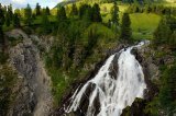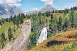 Kokkol Waterfall is a beautiful mountain waterfall, located at an altitude of 1915 meters above sea level, is one of the main attractions of the Katon-Karagay Nature Reserve. The highest waterfall in Central Altai, the height of the waterfall is 70 meters, the width is 10 meters, next to the waterfall there is a panoramic point from which you can watch the waterfall and see it at its full height. A beautiful cedar forest grows around the waterfall. The waterfall is formed by the Bolshaya Kokkol River, which flows out of Lake Kokkol (2418), upstream of the river is the famous abandoned mountain tungsten mine Kokkol. Also 15 kilometers from the waterfall is Mount Muztau (Belukha).