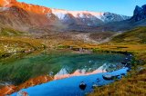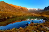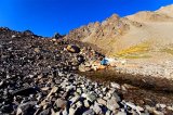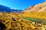 Lake Dikoe is a small picturesque mountain lake, located at an altitude of 3449 meters above sea level, surrounded by the most beautiful mountains of the Zailiysky Alatau. The Dikaya River flows into the lake, which originates in a nearby mountain glacier, and this river also flows out of the lake. The length of the lake is 1 kilometer, the width is 30 meters, the lake is not expressed in a typical way, there are small islands that divide the lake.