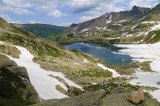 The second Morneal Turgusunskoe Lake is located along the mountain route in the Valley the Turgusun river after First Lake Turgusun at an altitude of 1980 meters above sea level. In the lake in the summer you can see ice floes, the water in the lake is very cold. When a strong wind of ice floes in the lake blows along the lake like icebergs. Next to the lake is the Burov glacier.