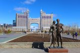 纪念碑"恋人"是一个浪漫的雕塑,位于阿斯塔纳的中心。 纪念碑的另一个名字是"我的幸福"。 雕塑代表了一个年轻的男孩和一个女孩在城市里散步。 这座纪念碑象征着男性和女性,男人和女人之间的爱情,传统价值观,爱情,家庭。 雕塑由青铜制成,雕塑家Tolepbai Yerbolat。 恋人纪念碑于2005年6月10日竖立,旁边是Khan Shatyr娱乐中心。 许多人将纪念碑"恋人"分配给中亚最色情的地位。 这样做的原因是哈萨克美女的透明或微湿的连衣裙。