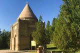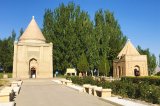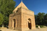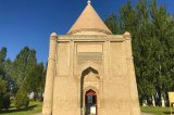 Aisha-bibi陵墓是XI-XII世纪杰出的建筑纪念碑。 该建筑内衬陶瓷板,装饰在豪华和多样性的哈萨克斯坦其他纪念和传统纪念碑中是无与伦比的。 这座陵墓装饰着各种几何图形. Aisha-bibi陵墓旁边是Babaji-Khatun的另一个着名陵墓。