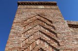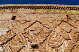 Duzen陵墓的主体建筑是一个复杂的圆顶立方体结构. 建筑物的拱形圆顶顶部有一个十角形环。 和底座的外部尺寸为8。 5x10.2m,内部尺寸为5. 为4x5. 4m。,砖的尺寸(26x26x6cm)用砂浆粘合。 在主立面上有一个门口(1.70x0. 77m)具有额叶腔。 其领土由三车道框架包围。 中间的条带用方形雕刻瓷砖制成的砖完成。 其余3个立面的墙壁用"菱形"形状的石砖编织而成。 外墙的高边缘有一个60厘米高的壁架。 方形的装饰有八角形的星星。 在建筑物西南侧的内角有一个通往天花板的楼梯。