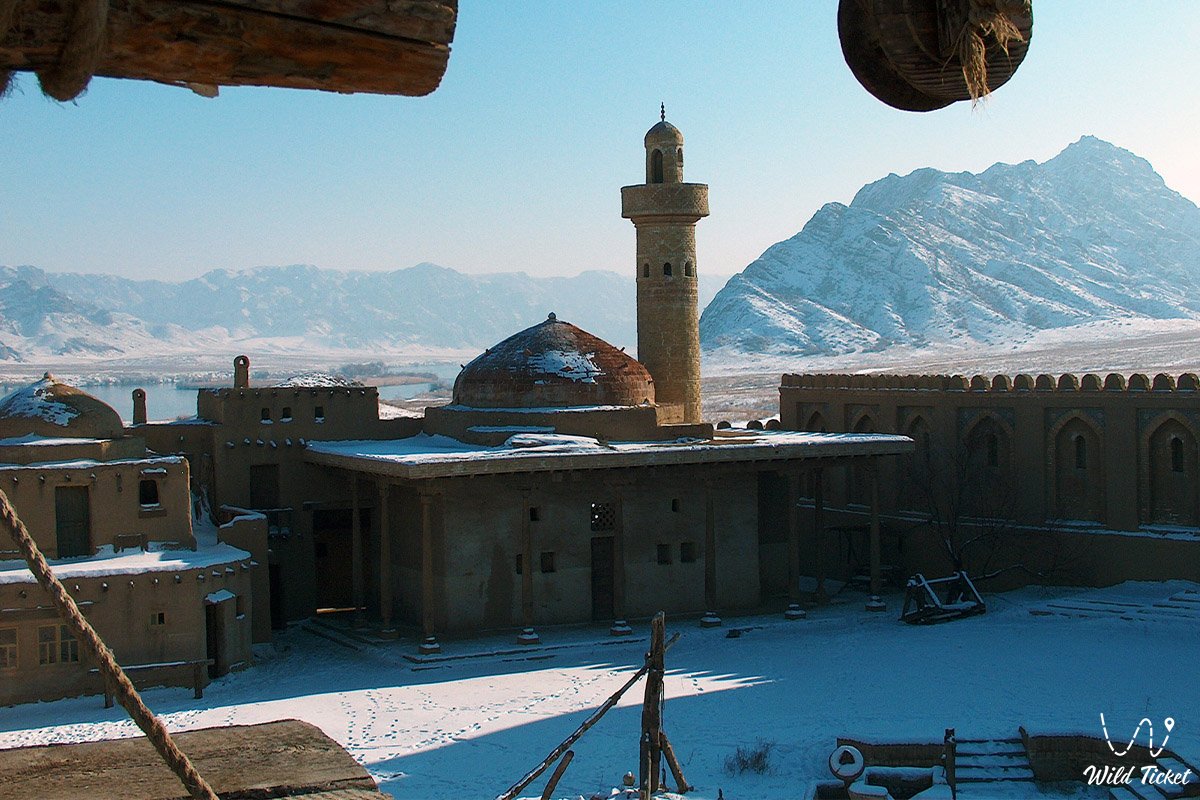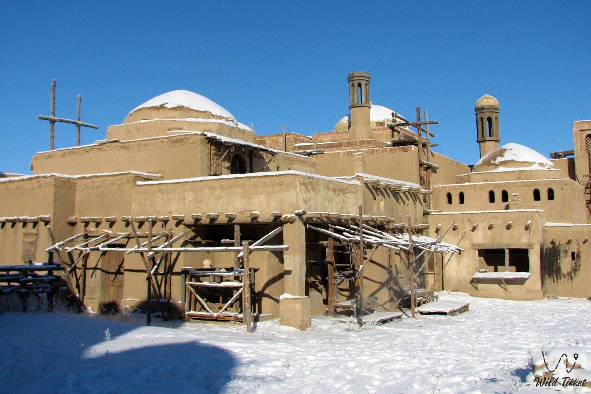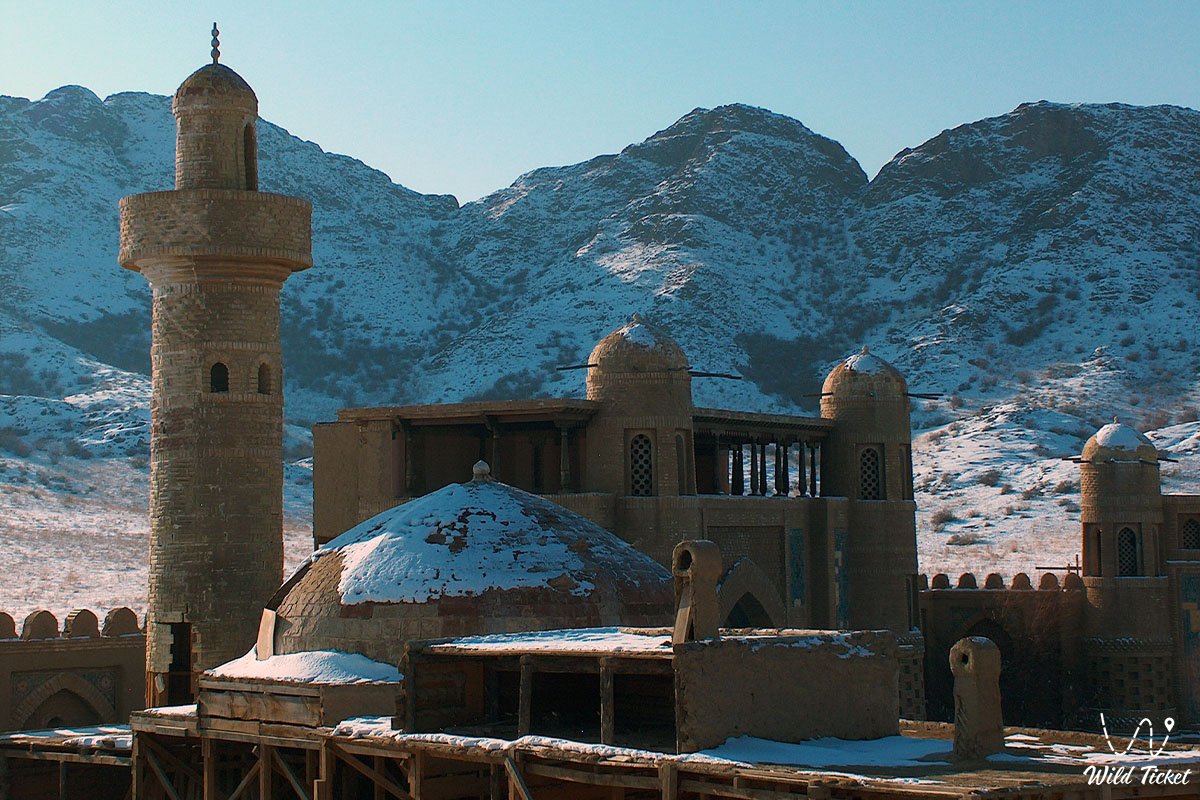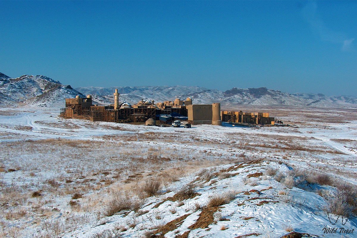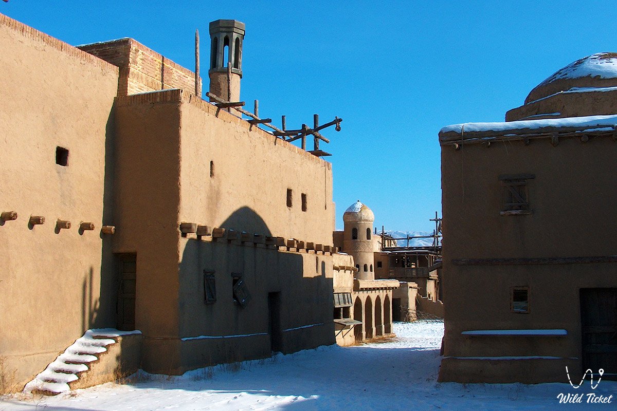 当 "游牧民" 的摄制组决定建造一个真正的城市, 包括街道, 清真寺, 汗的总部, 工艺车间, 市场, 地牢和几米高的大门时, 电影城的想法就出现了。 这些布景是用轻质材料建造的, 用粘土复盖, 并用茅草屋顶装饰, 创造了一个真正的东方定居点的完整幻觉。