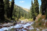 Prokhodnoye峡谷是一个风景如画的山峡, 位于Zailiyskiy Alatau山脉, 位于Bolshoy Almaty峡谷和Kargalinka峡谷之间。 山河Prokhodnaya流经峡谷, 起源于峡谷上游的冰川, 是Bolshaya Almatinka河的右支流。 沿着峡谷有一条山路, 将带您前往Dzhusaly-Kezen山口 (3333), 穿过Terra林间空地(2640)。 从山口可以爬到Bolshoy Almatinsky峰 (3680) 和旅游峰 (3954), 还有一条沿着峡谷进一步到达Dikoye湖 (苏格兰) (3447) 的路线, Dikaya河起源于此。 这条路线通常在两天内复盖, 并在Terra glade过夜。 如果您进一步前往吉尔吉斯斯坦, 您可以到达阿拉木图山口 (3595)。 你不能沿着通行证进一步移动, 哈萨克斯坦和吉尔吉斯斯坦之间的边界运行, 这里没有检查站, 非法过境是一种违法行为。