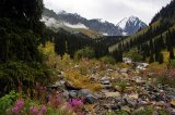左Talgar河位于哈萨克斯坦共和国, 阿拉木图地区, 阿拉木图自然保护区, 阿拉木图左塔尔加山峡谷, Zailiyskiy Alatau山脉, Ile Alatau公园。
